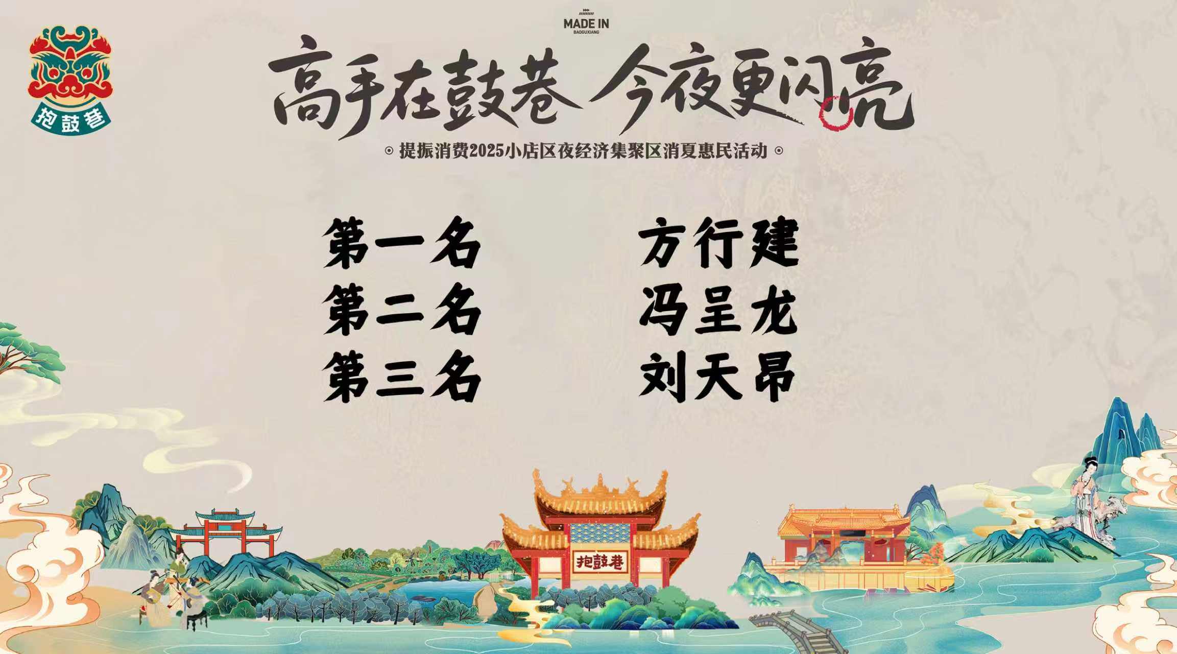 经过精彩比拼,方行建斩获第一名,冯呈龙荣获第二名,刘天昂获得第三名,他们以出色的演唱实力与舞台表现力赢得观众与评委的一致认可。赛事既为群众搭建了展示自我的平台,激发了全民文化参与热情,也凭借高关注度集聚了大量人气,牺汤品鉴区排起长队,抱鼓巷内热闹非凡。